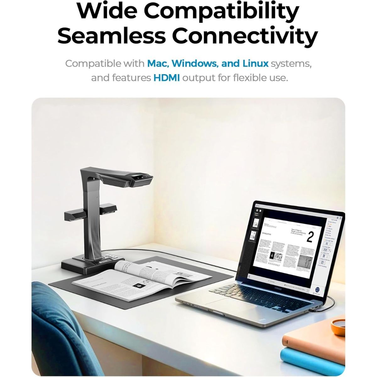 - Laser Curve-Flatten Technology: Automatically corrects curved book pages for distortion-free digital output.