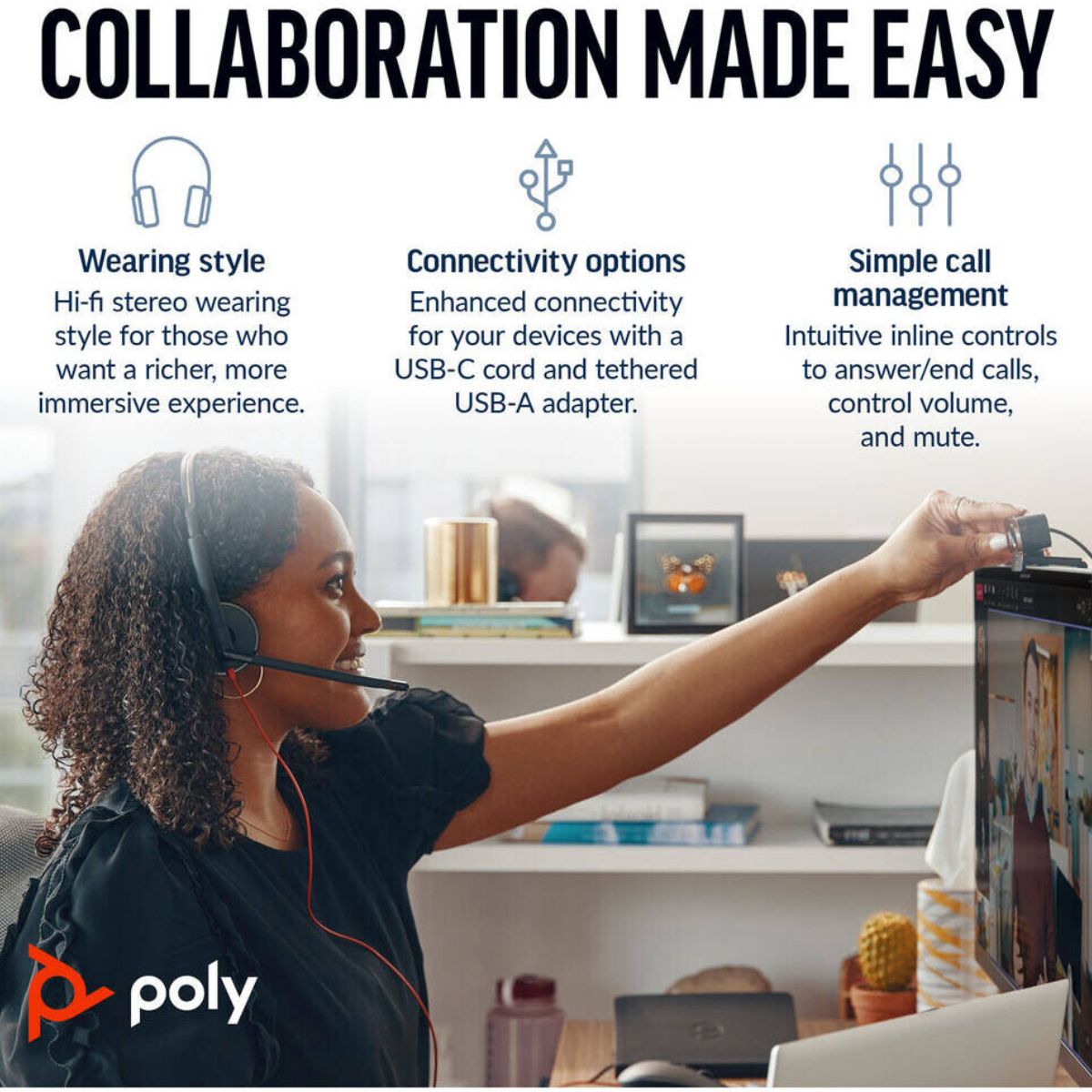 The Poly Blackwire 3220 USB-C Headset delivers dependable call clarity, flexible connectivity, and comfortable all-day wear, making it an ideal choice for modern work and communication needs.