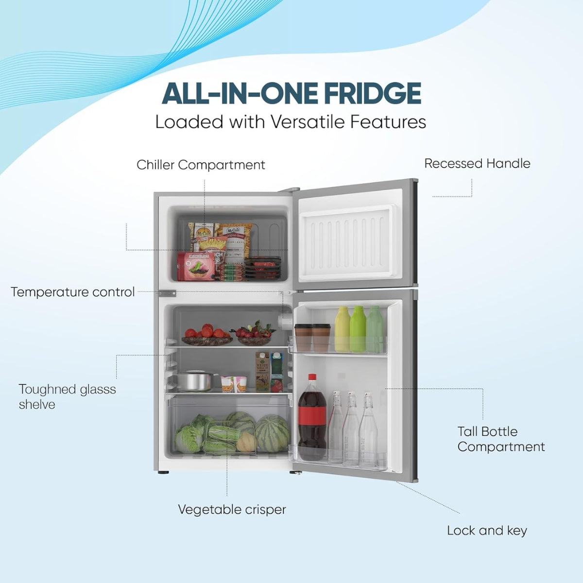 Nikai 135 Liter Double Door Small Refrigerator NRF135DDS, With Adjustable Thermostat, 250V Power, Defrost Cooling, Power Saving Silent & Reliable Compressor