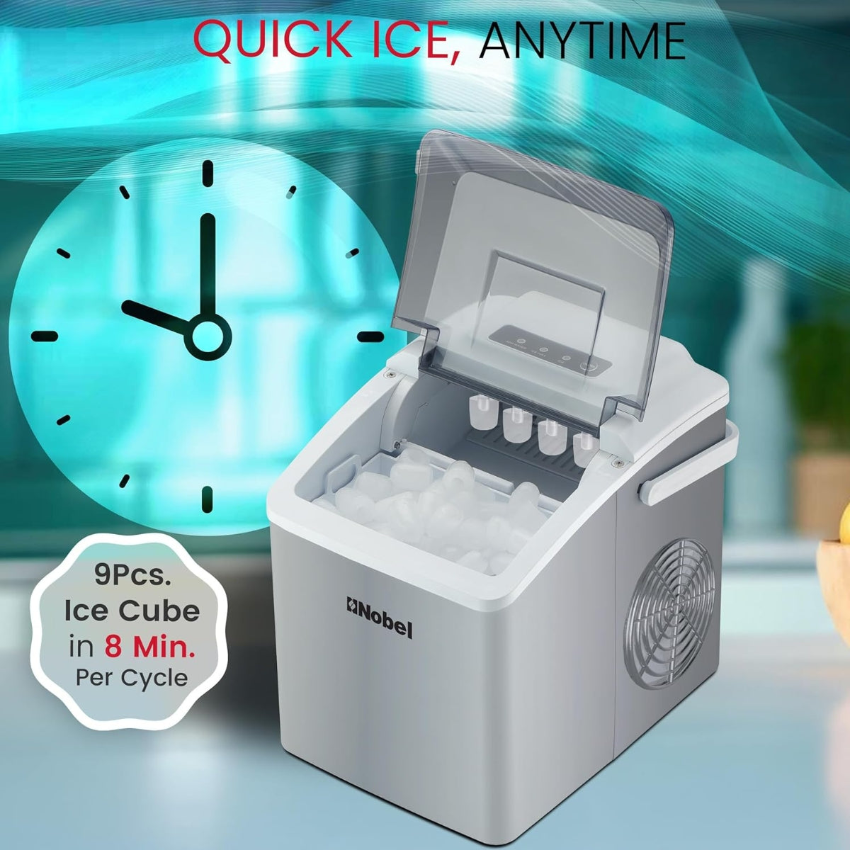 - Makes **9 bullet-shaped ice cubes every 8 minutes per cycle**