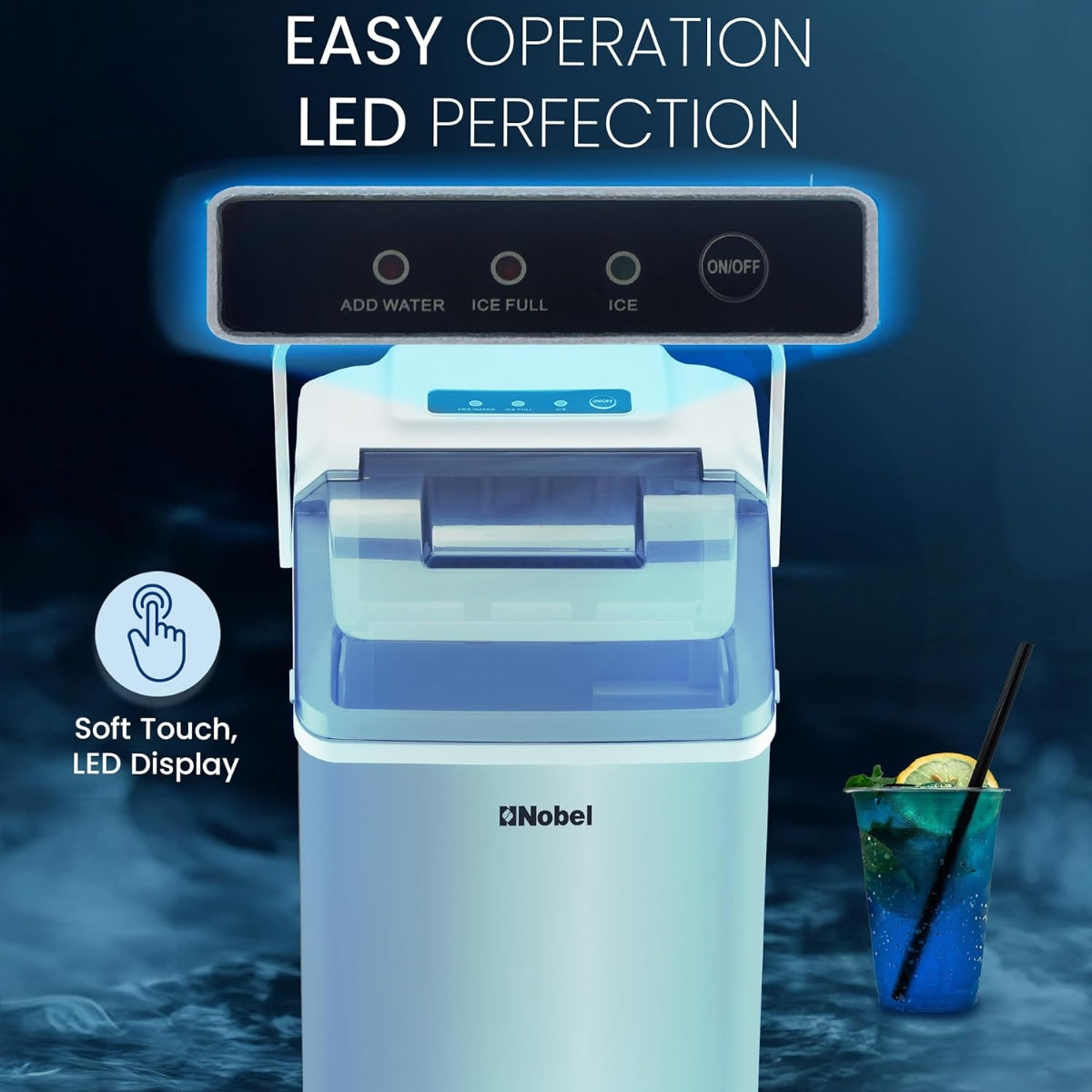 The Nobel Ice Cube Maker NIM13S is made for those who want fast, abundant ice with minimal effort. With the ability to produce **10-12 kilograms of ice in 24 hours**, bullet-shaped cubes, and a 1.3-litre water tank, it’s ideal for homes, parties, or cafes. Features like LED indicator, full ice basket alert, and both manual & automatic water refill make it user-friendly and reliable.